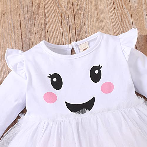 Toddler Baby Girls Halloween Outfits Long Sleeve Pumpkin Ghost T-Shirt Top Tutu Skirt Pants Headband Clothes Sets 6