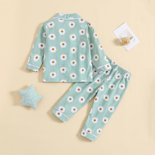 Toddler Baby Boy Girl Satin Pajamas Set Floral Long Sleeve Button Down Sleep Shirts Top Lounge Pants Fall Pjs Kids Sleepwear 6