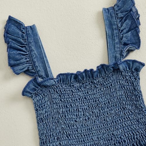 Baby Girl Denim Clothes Toddler Wide Leg Romper Sleeveless Ruffle Strap Smocked Bell Bottom Jean Overalls Jumpsuit 6