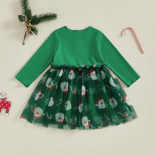 Toddler Baby Girl Clothes Christmas Dress Sequin Santa Claus Crew Neck Long Sleeves Tulle Patchwork A Line Dress 6