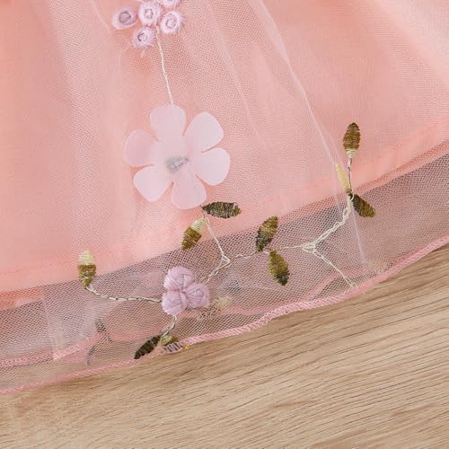 Infant Toddler Baby Girl Summer Dress Ruffle Short Sleeve Tulle Tutu Skirt Embroidery Flower Clothes for Party Beach Casual 6