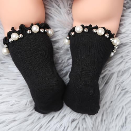 Baby Toddler Girls Cotton Knitted Ankle Socks Princess Pearls Frilly Ruffed Dress Socks 6