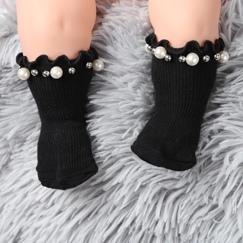 Baby Toddler Girls Cotton Knitted Ankle Socks Princess Pearls Frilly Ruffed Dress Socks 5
