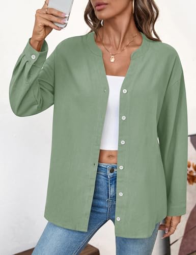 LOMON Womens Button Down Shirts Long Sleeve Cotton Button Up Shirt Linen V Neck Casual Loose Tops Blouses 6