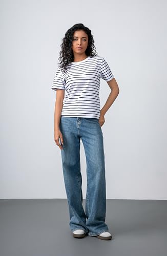 • Striped T-Shirt: A classic wardrobe staple, this versatile women's cotton top features a crew neck, perfect for layering with your favorite jacket or cardigan, or worn on its own for a casual, everyday look.
