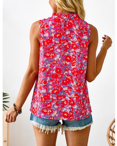 SimpleFun Womens Tank Tops Ruffle High Neck Pleated Summer Blouses Floral Sleeveless Shirt 5