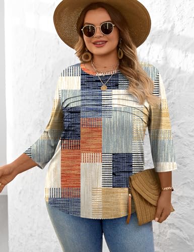 • 【Flattering & Comfortable Fit】LOMON Plus Size Crewneck blouse offers a relaxed yet stylish look, perfect for plus size spring and summer outfits. The 3/4 length sleeve design provides effortless coverage, while the soft, breathable fabric (60% Polyester, 35% Rayon, 5% Spandex) keeps you cool all day.