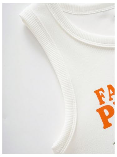 WDIRARA Women's Letter Print Graphic Round Neck Sleeveless Rib Knit Crop Tank Top 6