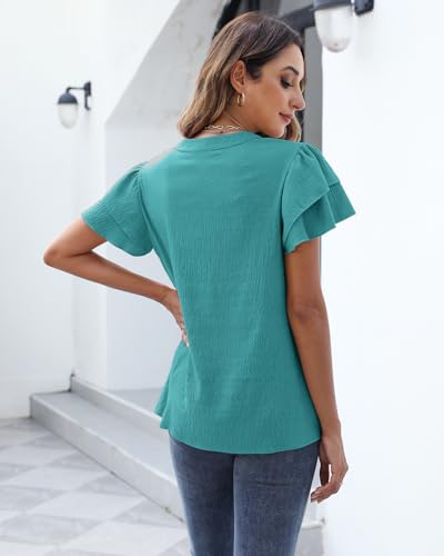 HEYTALALA Womens Summer Tops Dressy Casual Ruffle Short Sleeve V Neck Shirts Business Work Blouses 2025 Trendy 2
