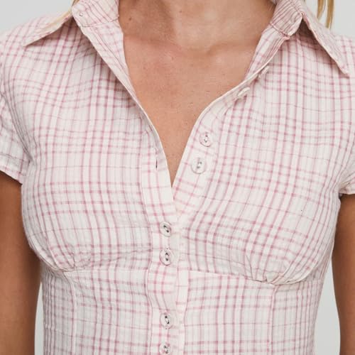 More information about Women's Plaid Button Down Shirt Y2K Short Sleeve Vintage Blouse Top