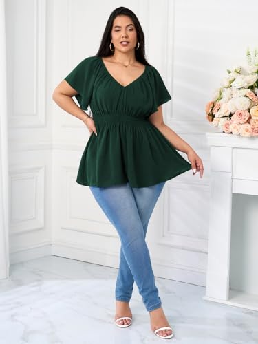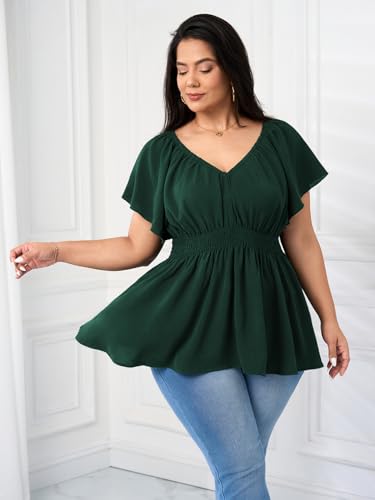 Womens Plus Size Tops V Neck Short Sleeve Blouse Babydoll Ruffle Peplum Smocked Dressy Casual Summer Top 6