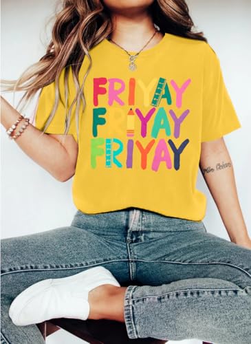 HOT ! Happy Friday Teacher Shirt Women Happy Friyay T Shirt for Teachers Funny Friday Weekend Holiday Vacation Tee Tops