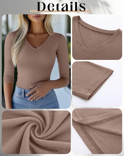 Huukeay 3 Pack Women's 3/4 Sleeve T-Shirts, Summer Cotton V Neck Slim Fit Tops Casual Tight Going Out Blouse Basic Layer Tees 4