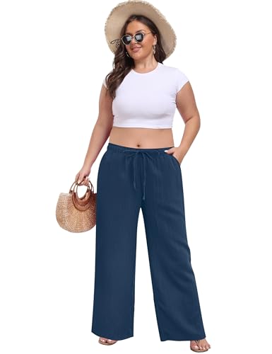 More information about Womens Wide Leg Palazzo Pants Dressy Casual Lounge Baggy Pant Summer Travel Loose Drawstring Elastic Waist Trouser with Pockets Navy Blue S