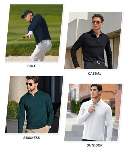 Polo Shirts for Men Long Sleeve Moisture Wicking Golf Polos Casual Travel Performance Collar Shirts 4