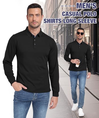 HOT ! Polo Shirts for Men Long Sleeve Moisture Wicking Golf Polos Casual Travel Performance Collar Shirts