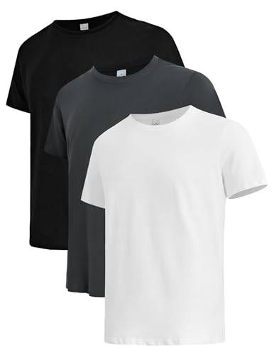 Mens Soft Cotton T-Shirts 3-Pack, Crew Neck Basic Tees,Solid Color Versatile T Shirt 3