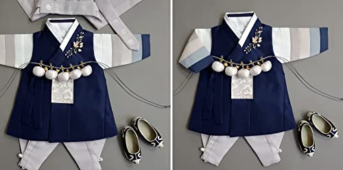 More information about Mutil Colored Sleeves Navy Hanbok Boy Hanbok for 100days~15y/o Korean Traditional Dress Baby Boy Kids Hanbok