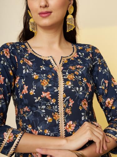 More information about Tissu Women's Navy Blue Printed Pure Cotton Kurta & Palazzo With Dupatta