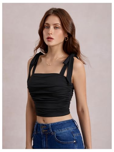 HOT ! Verdusa Women's Knot Tie Shoulder Crop Cami Top Sleeveless Ruched Y2k Going Out Tops