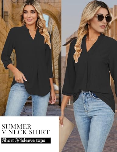 Buauty 3/4 Length Sleeve V-Neck Womens Tops Summer Trendy Loose Eyelet T-Shirts Casual Dressy Tunic Blouses 2