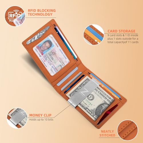 HOT ! Zitahli Slim Wallets for Men - Leather Money Clip Mens Wallet - RFID Blocking Front Pocket Bifold Wallet - Minimalist Credit Card Holder with Gift Box
