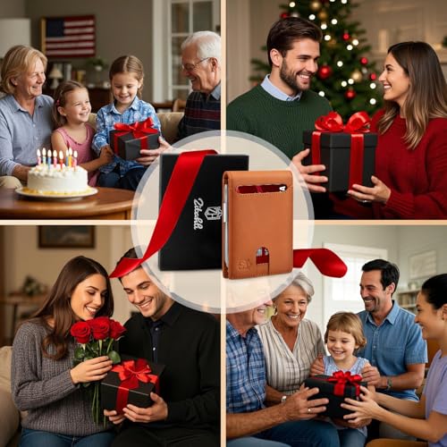 • GIFT BOX PACKAGING - Each wallet comes with an elegant gift box, making it an ideal present for your boyfriend, husband, or kids. It's a special gift for birthdays, anniversaries, Father's Day, Christmas, or any other special occasion. Surprise your loved ones with this practical yet stylish wallet.