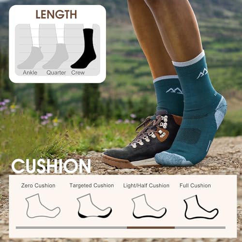 innotree 3 Pack Men's Merino Wool Hiking Socks, Micro Crew Cushioned Hiking Walking Thermal Moisture Wicking Trekking Socks 4