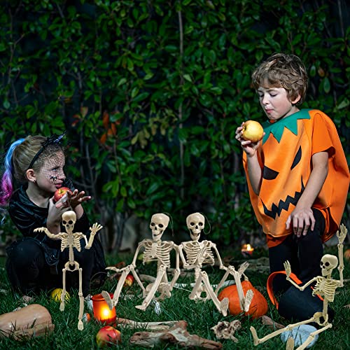 CAMIRUS 6PCS Skeleton Halloween Decorations, 16 in Full Body Poseable Small Skeleton Plastic Bones with Movable Posable Joints for Halloween Indoor Outdoor Party, Graveyard, Haunted House Accessories 6