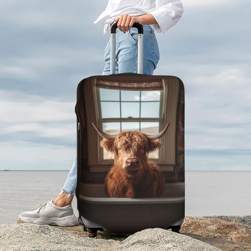 HOT ! Cute Highland Cow In The Bathtub Elastic Travel Luggage Covers Dustproof Scratch-Resistant Suitcase Protector Fit 22-24 Inch