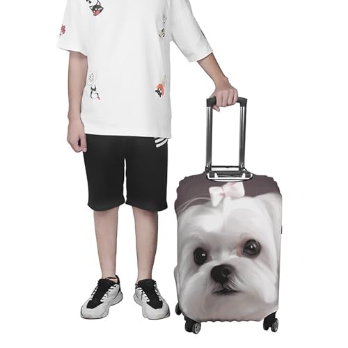 Lovely Maltese Dog Luggage Covers Elastic Suitcase Cover Protector Cute Travel Suitcase Protector Anti-scratch Fits 19-32 Inch Luggage M 7