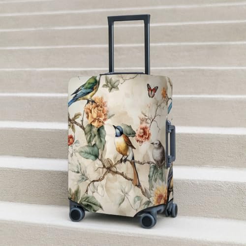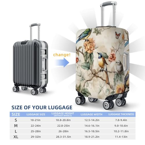 HOT ! Retro Bird Flower Stretchable Luggage Covers for Suitcase TSA Approved, Dust Proof and Scratch Resistant Travel Luggage Protector for Carry On (18-21 in)