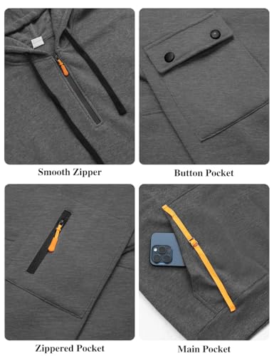 Men's Pullover Hoodies Quarter Zip Long Sleeve Shirts Drawstring Sports Casual Hooded Sweatshirts with Pockets 6