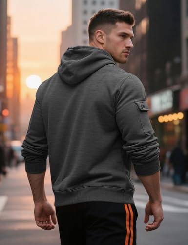 • 【Stylish Design】Mens long sleeve drawstring hooded, durable kangaroo pocket, sports. Just fitted enough to show off your figure, but not enough to restrict your motion.