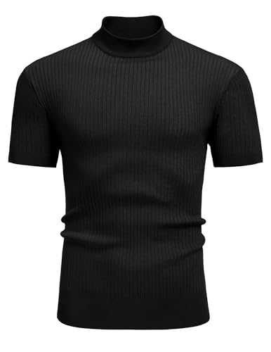 COOFANDY Men's Mock Turtleneck Sweater Short Sleeve Casual Basic Tops Ribbed Knit Pullover Solid Tee 1
