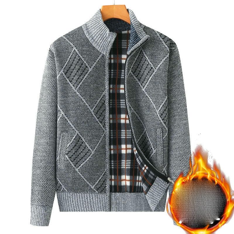 More information about Men's Autumn Winter Thickened Plush Lined Warm Knit Sweater Cardigan