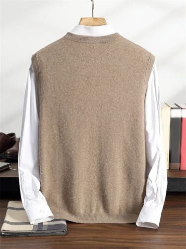 Men's V Neck 100 Percent Cashmere Cardigan Vest Fall Winter Sleeveless with Pockets Smart Casual 6