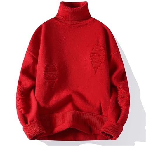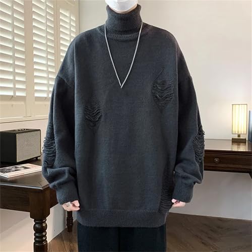 HOT ! Men's Ripped Turtleneck Pullover Solid Color Casual Knitted Sweater Loose Street Sweater