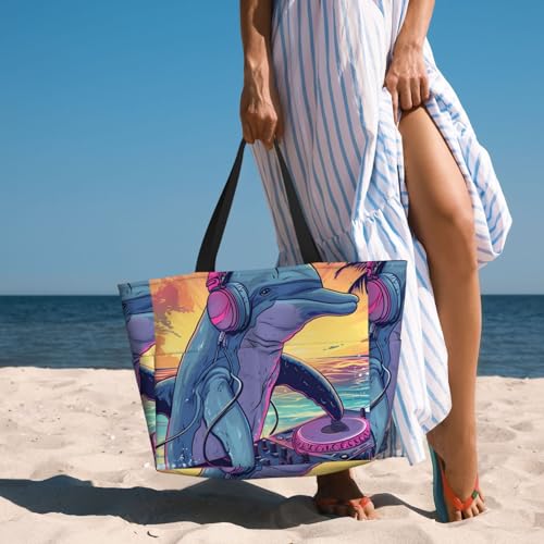 Hip-Hop Dj Dolphin Print Beach Pool Bags Tote For Women Ladies Large Gym Tote Carry On Bag For Weekender Travel Waterproof 6