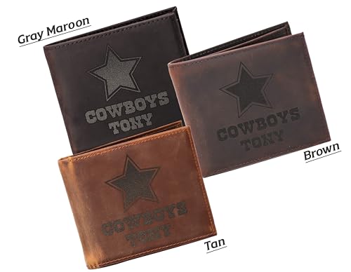HOT ! Personalized Cowboy Wallet for Men – Engraved Leather Mens Wallet – Football Gift for Him – Slim Western Wallet - Men Gifts for Christmas, Birthday, Anniversary