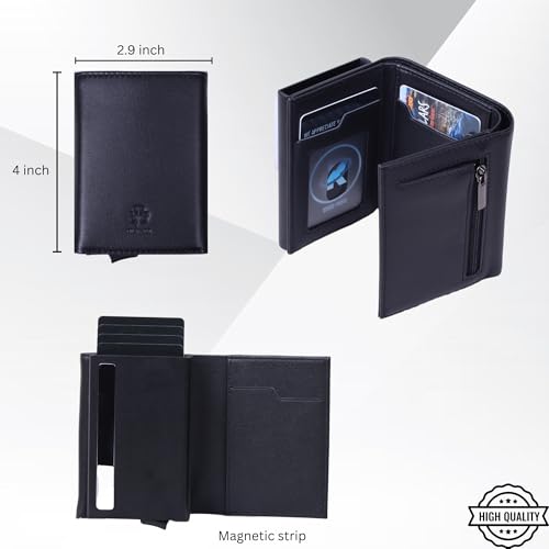 Pop Up Wallet for Men Toggle Style, Premium Leather Trifold with RFID Blocking, Coin Cash Pocket Slim Minimalist Front Pocket EDC Wallet Perfect for Father’s Day, Birthdays, special ocassions 1