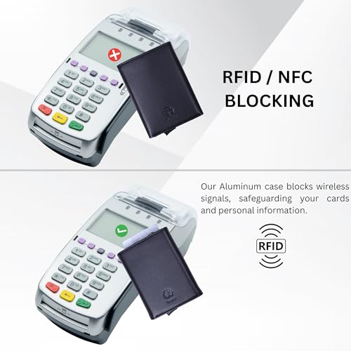 • STYLISHLY COMPACT, SLIM & DISCREET: Measuring only 2.9" x 4" x, this RFID front pocket wallet is ultra-thin and sleek, designed for a modern minimalist lifestyle. It fits effortlessly into your pocket, and travel bag without adding bulk.