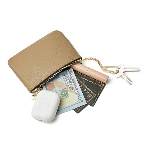 DAILANDO Small Leather Coin Purse for Women, Unisex Zipper Card Holder and Slim Coin Pouch with Keychain 4