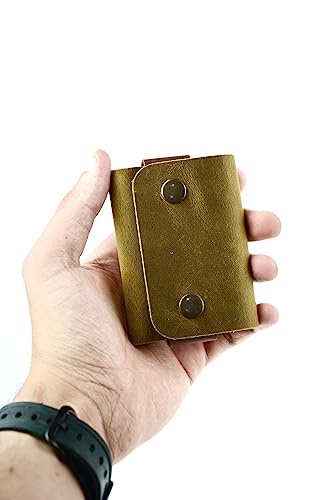 • FEATURES: This gorgeous card case is completely handmade from premium leather with care and attention to detail, it is durable and stylish. Easy to use. Ideal for carrying your most frequently used cards and some banknotes. Stores almost invisibly in your pocket or purse, this mini card holder is perfect for those tired of other bulky and bulky wallets. You will fully feel the presence of real leather every time you use this 100% handmade card holder, and you will experience this even more thanks to its aged appearance as you use it.