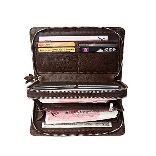 HOT ! Wallet Genuine Leather Wallet Large Capacity Coin Purses Zipper Men's Card Holder for Storing Credit Card Change Coins Pocket Tear-Resistant,Brown,12x21cm