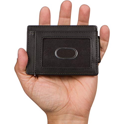 • MINIMALIST, SLIM, AND HIGH-CAPACITY: This card holder boasts high capacity without wasted space. The money clip securely holds bills using powerful magnets. These slim RFID wallets for men have 3 card pockets, a transparent ID window, and a spacious extra pocket for additional cash or cards.