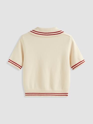 CIDER Short Sleeve Sweater Knit Top Collar Neck Stripe Pullover Casual Elegant Women’s Collared Sweaters 1