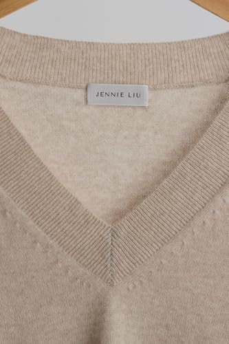 JENNIE LIU Women's 100% Pure Cashmere Long Sleeve Ava V Neck Pullover Sweater 6