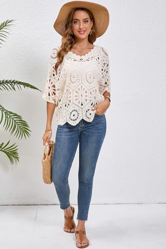 Women's Crochet Tops Boho Hollow Out V-Neck Pullover Lace Cove Up 6