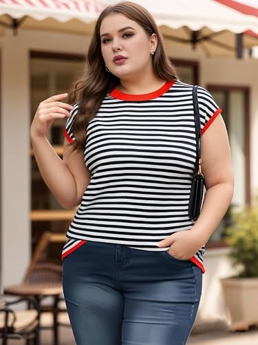 HOT ! Cap Sleeve Tops for Women Summer Striped Short Sleeve Sweater Top Crew Neck Sleeveless Vest Spring Going Out Shirts
